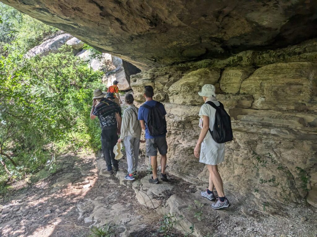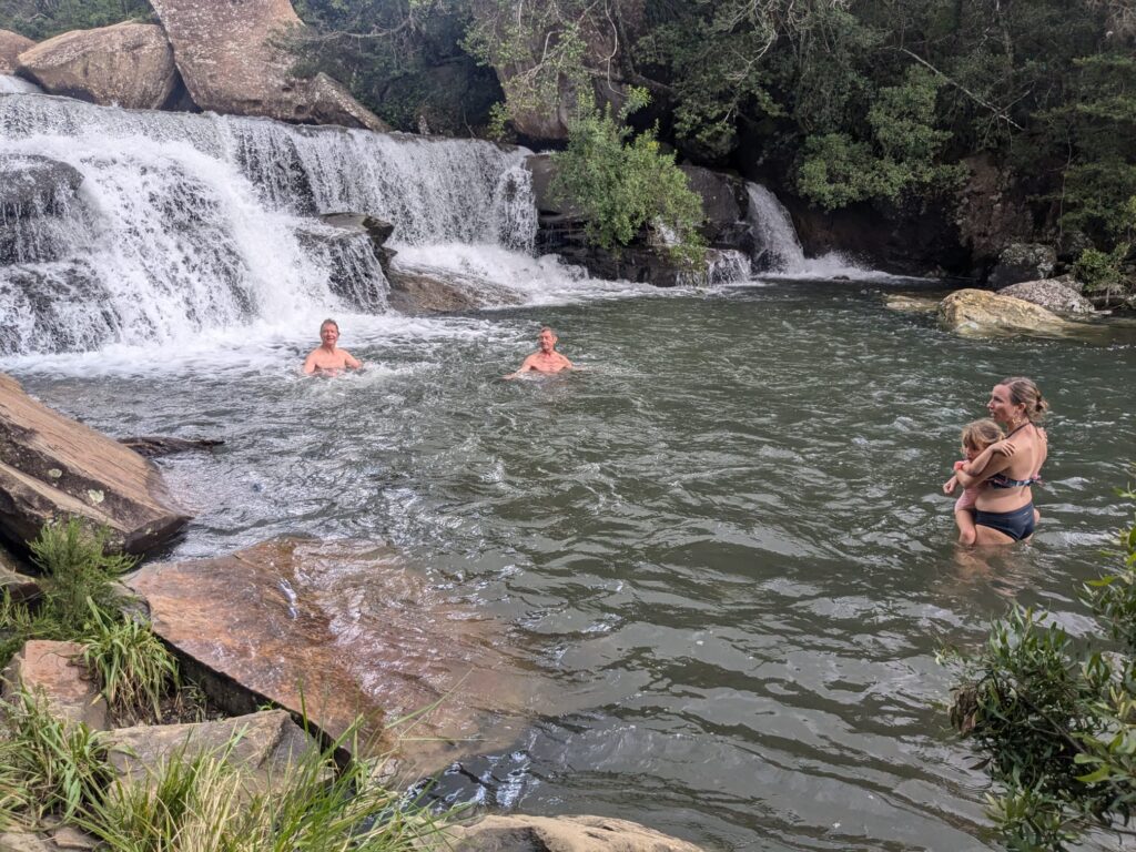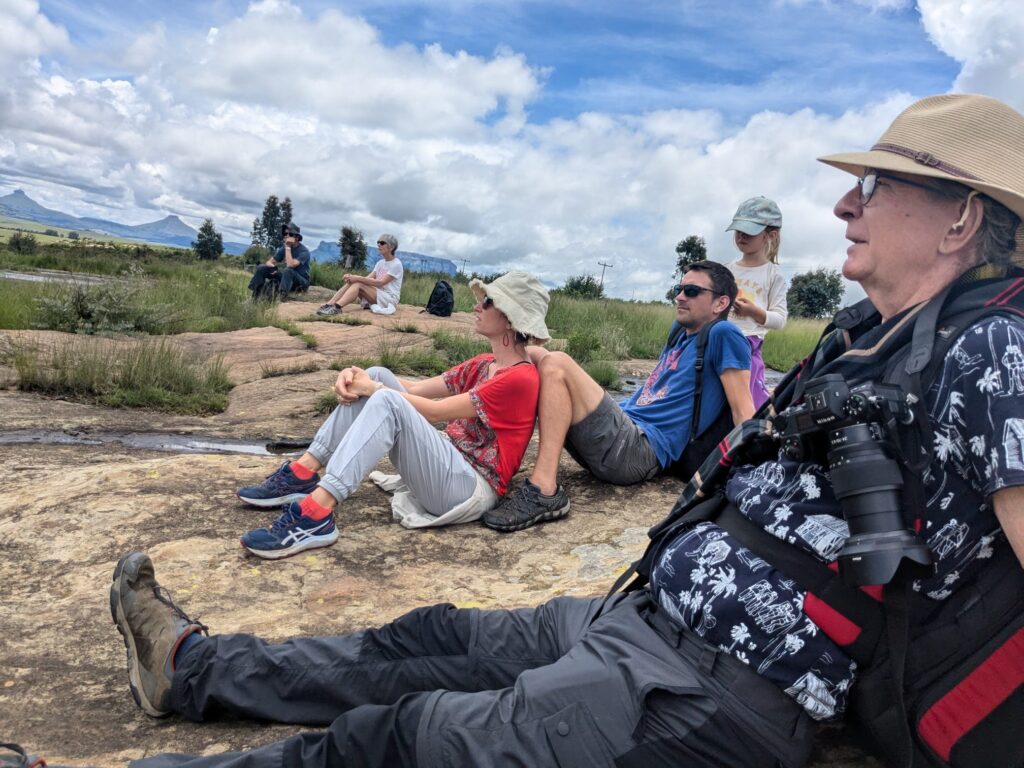 Grimpette sous un soleil de plomb pour voir quelques peintures rupestres des Sans (bushmen) puis bains pour certains d’entre nous dans les cascades, sans nous éterniser car l’orage guette.