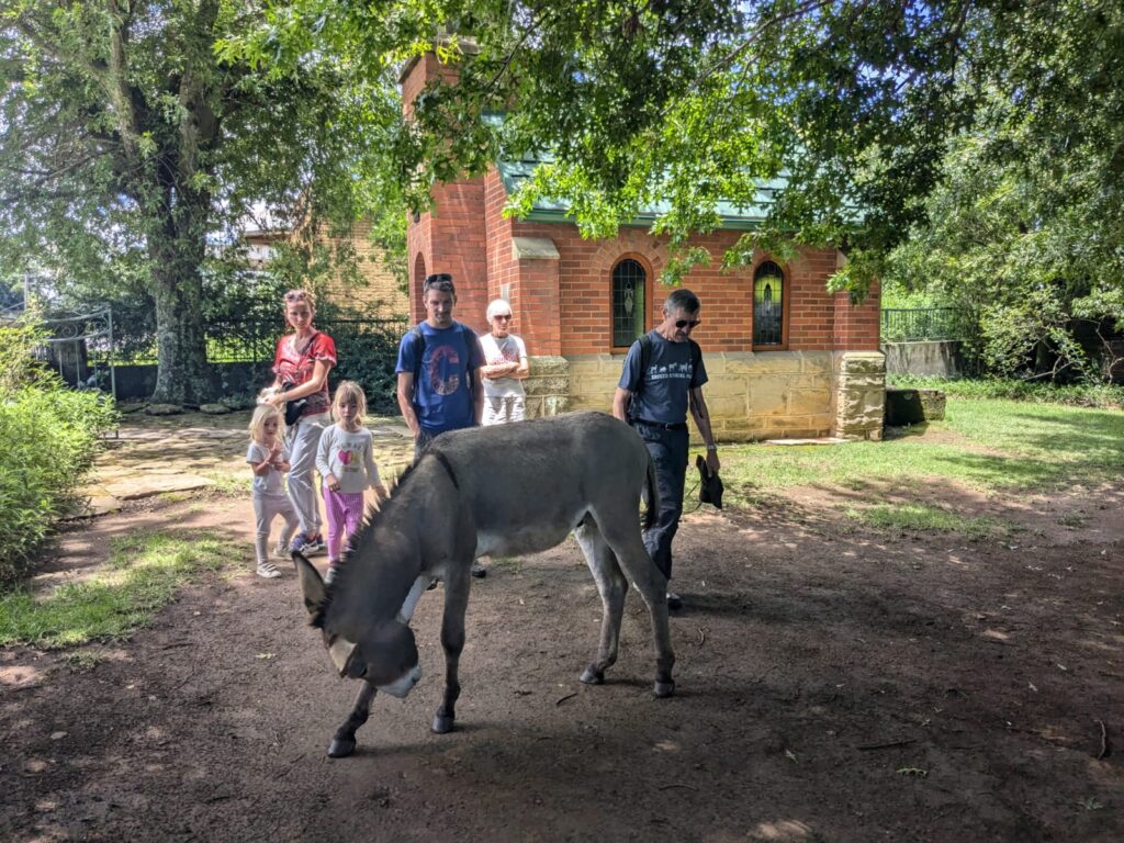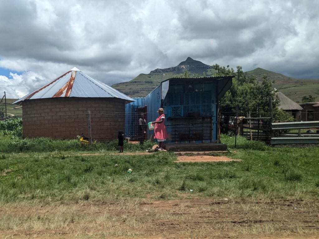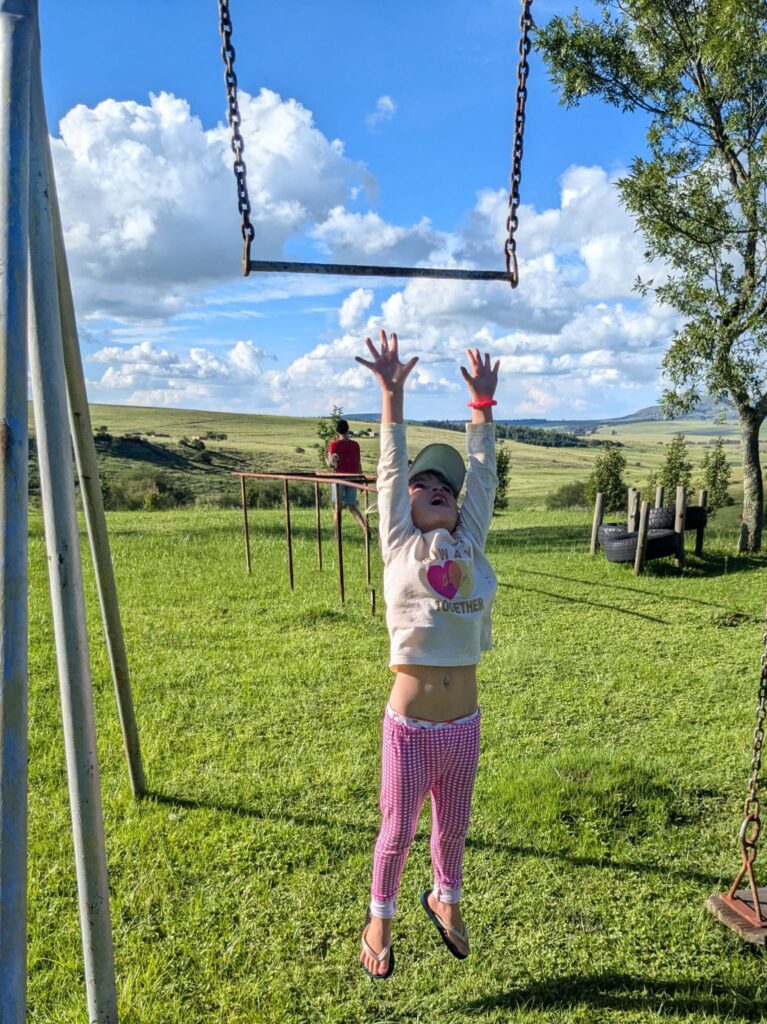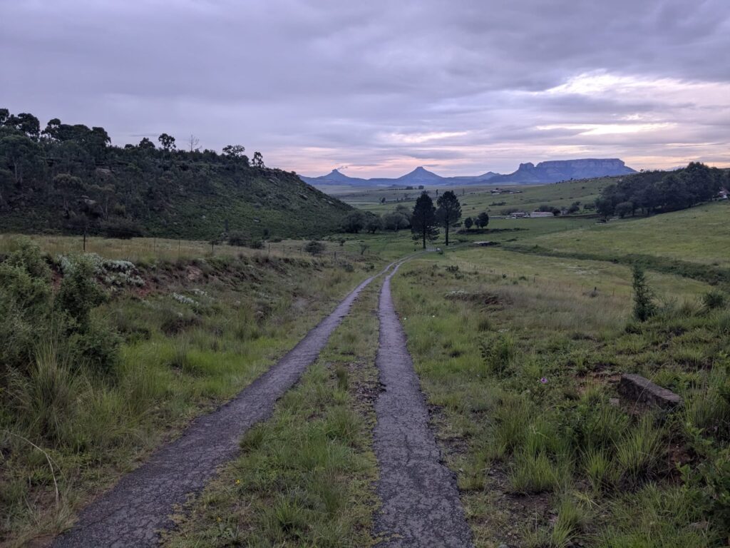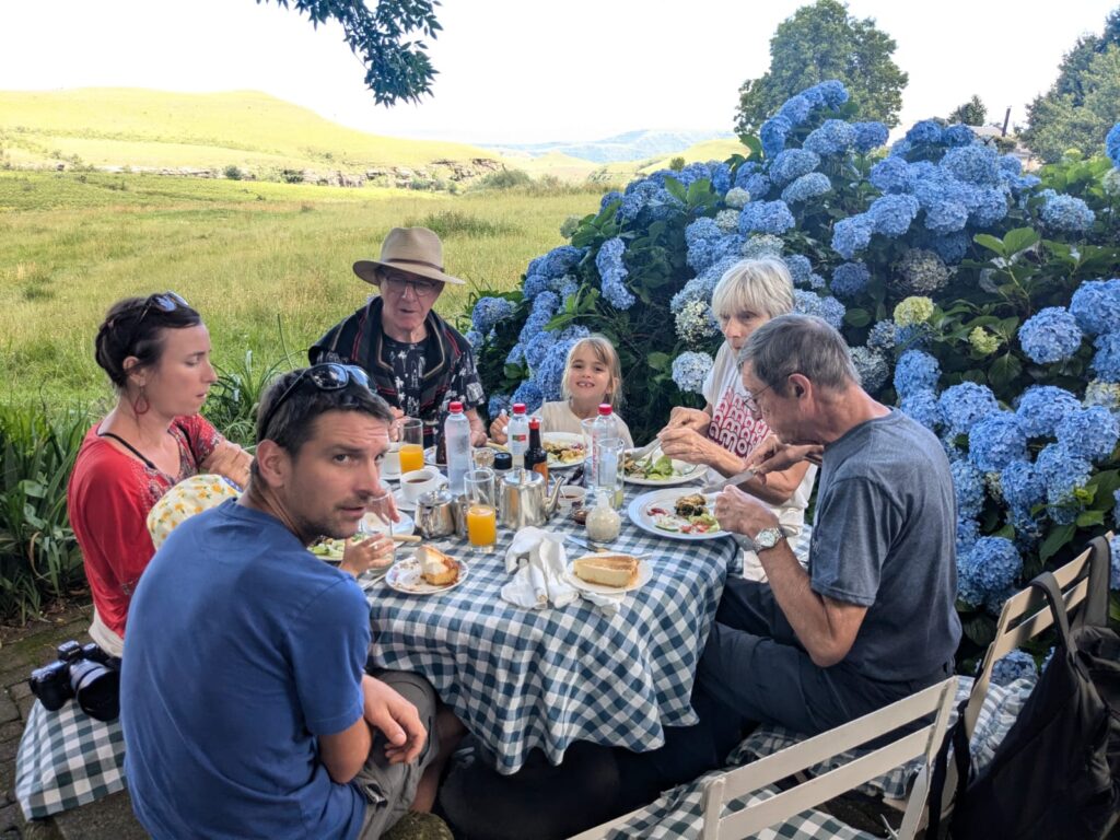 Magnifique région verdoyante, avec des sommets de montagnes aux formes étonnantes. On arrive au bout du monde par une longue piste caillouteuse, puis une barrière. C’est bien là que nous restons trois nuits : Oban farm à Van Reenen (altitude 1700 m), des prairies à perte de vue avec des vaches, quelque chevaux. La chambre d’hôte est rustique, déco anglo-kitch un peu surannée, amplifiée par les décos de noël un peu partout. Mais on s’y sent « à la maison » : plusieurs salons avec fauteuils, canapés profonds, moquettes, bibliothèques, têtes d’animaux empaillés au mur, tableaux, moultes bibelots et, grand confort, un poêle à bois, très apprécié le premier soir. Nous sommes quasiment seuls donc nous squattons le salon. Les filles ont adopté la « salle de jeux » proche de la salle à manger, un vrai bonheur pour le repos des parents et grands parents. Nous avons quand même quitté ce havre de paix pour nous rendre à une heure et demie de là, dans le Royal Natal National Park : un cadre spectaculaire avec l’Amphithéâtre, cirque rocheux, des falaises hautes de 1000 m, dominés par le Mont aux Sources (3282 m).