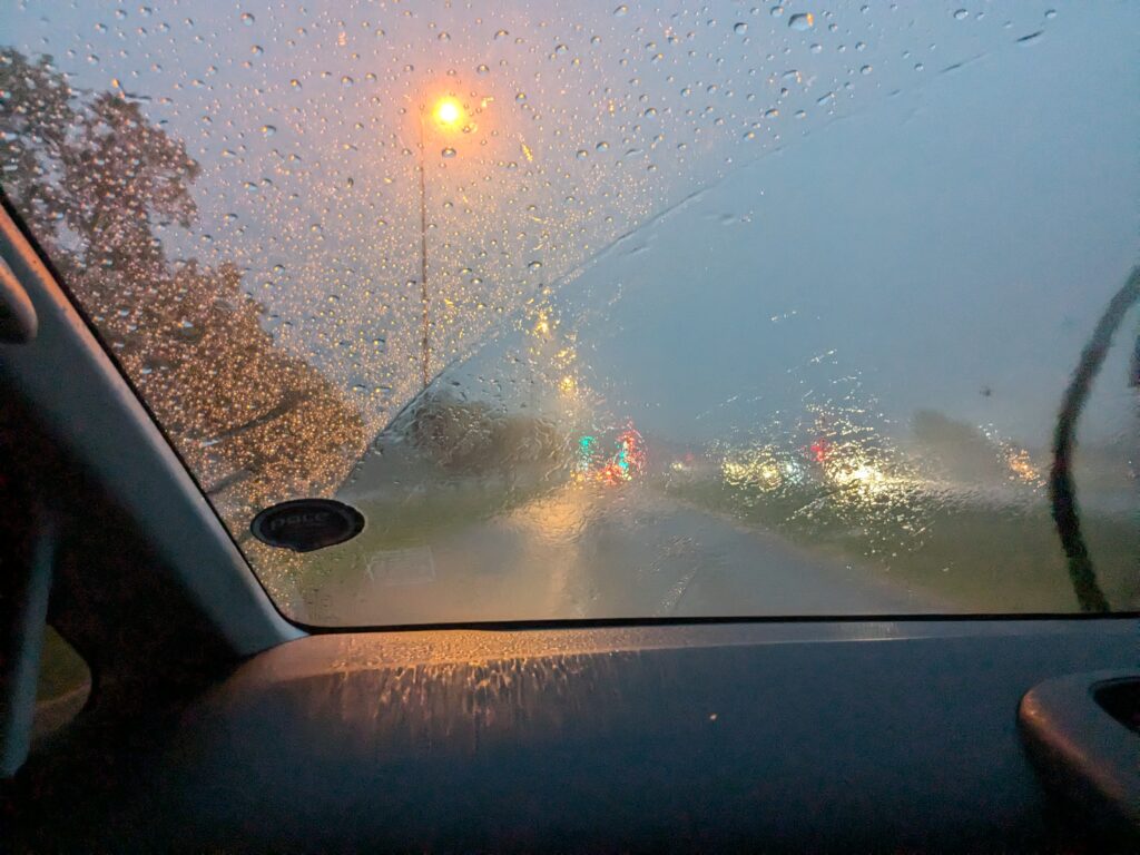 Direction notre premier hébergement, il faut rouler à gauche, sous une pluie battante.