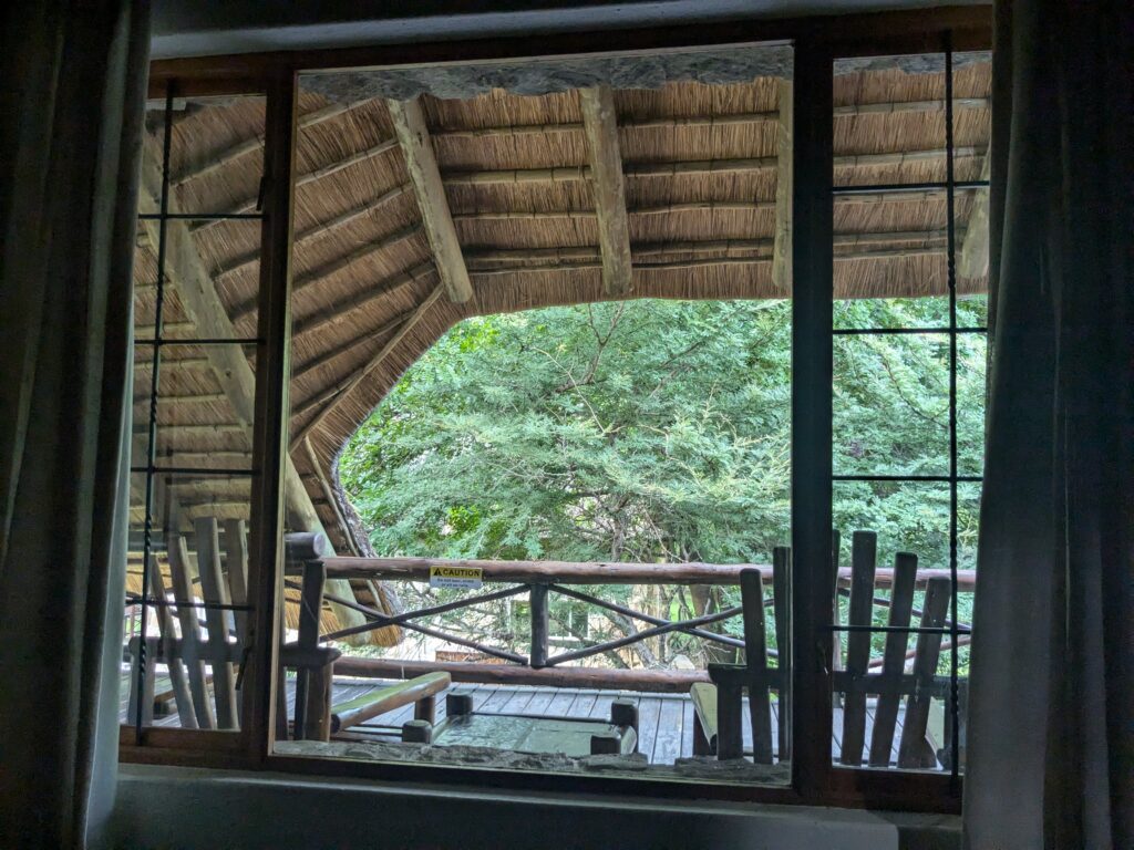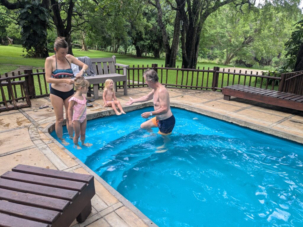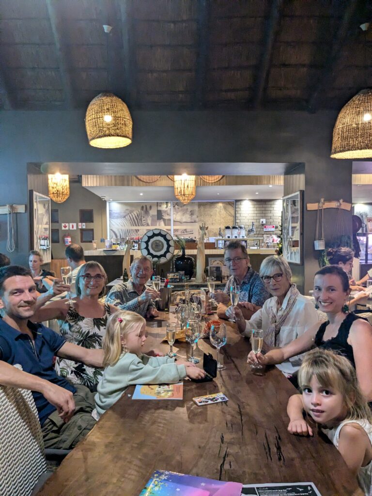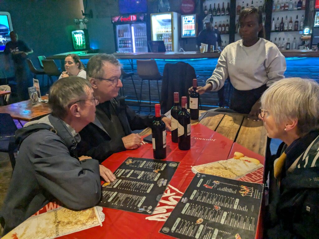 Cela ne nous décourage pas (de toutes façons, on n’a pas le choix) et nous en profitons pour goûter notre premier vin sud africain, un cépage typique du coin, le « pinotage ».