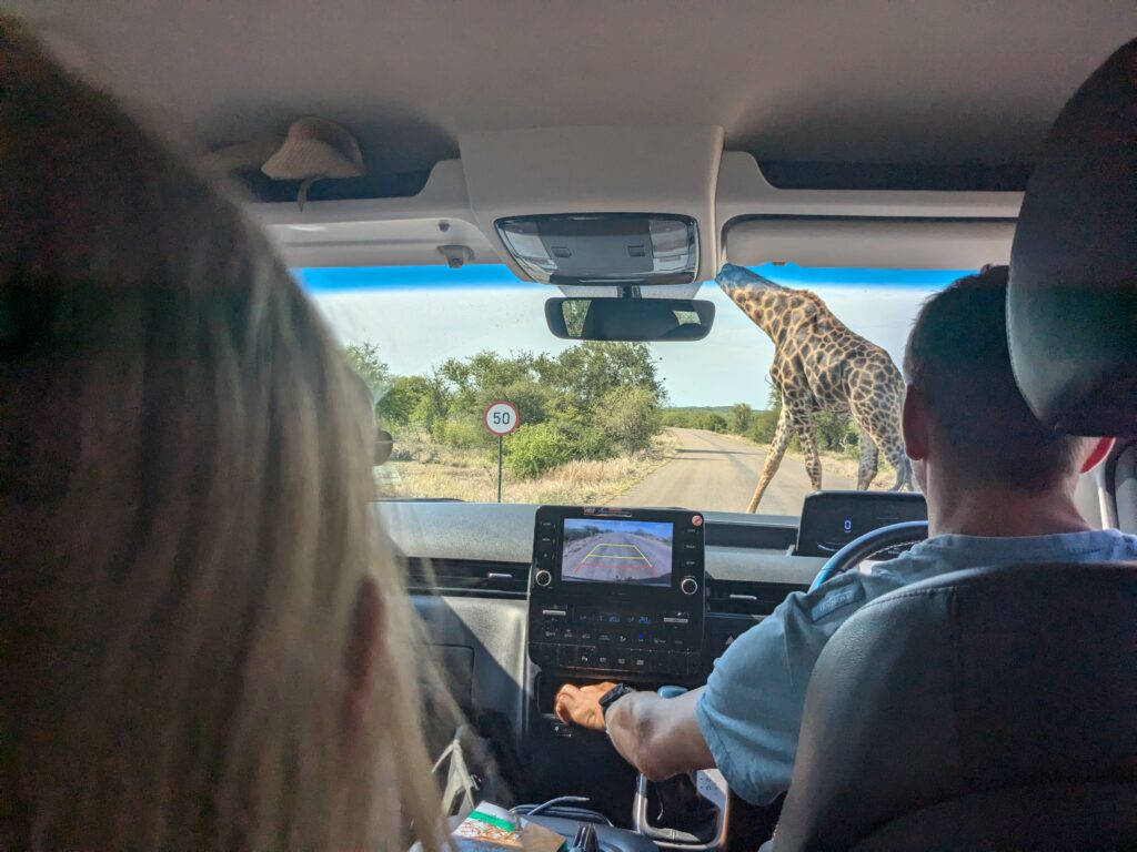 La route est belle et le premier arrêt rapide dans une aire dure plusieurs heures… Il se trouve qu’il y a des boutiques, des jeux pour enfants, un parc animalier autour et un restaurant au service très lent…
