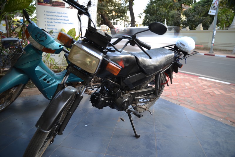 Palabres diverses et variées, sur le prix de la moto, l’interdiction du demi-tour, le prix de l’amende si on va « to the office »… Ça me coûte 80000 Kips (un très bon repas avec boisson) environ 9 €. Ça commence bien ! Pendant ce temps, le Christian doit penser que je me suis carapaté avec sa moto (mais non, j’avais laissé mon téléphone en gage) Je réussis à retrouver le chemin et un nouveau marchandage commence avec le vendeur. A partir de 300 $, on se met d’accord à 230 €. Ça me laissera une marge pour des réparations éventuelles.