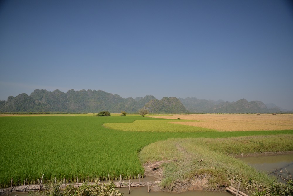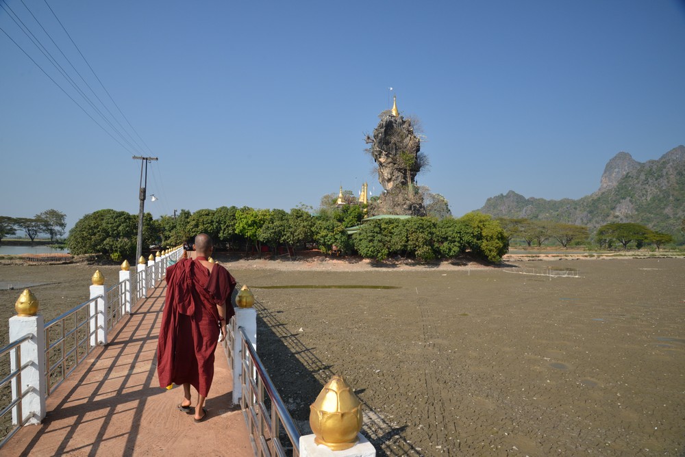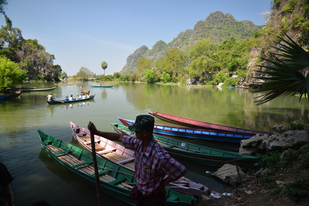 Voyage en bateau entre Mawlamyine et Hpa an très agréable. Certes le bruit du moteur est présent mais le paysage est reposant, plaine, collines, stupas…