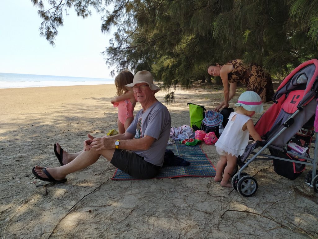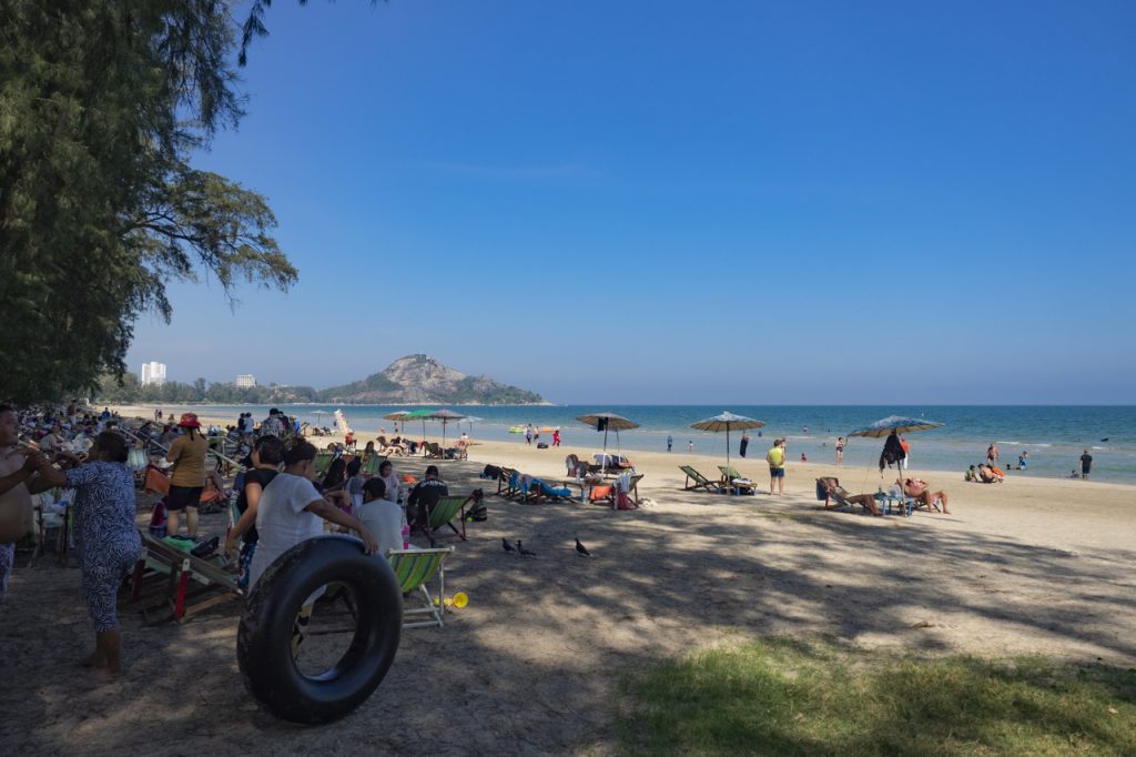 Aujourd’hui, nous revenons à la plage d’hier, côté public Suan Son Pradipat Beach. Plage tout aussi belle et ombragée mais équipée de chaises longues, tables et parasols. Occidentaux et familles thaïes s’installent pour la journée. Des échoppes proposent de quoi pique niquer à des prix défiant toute concurrence. Les tarifs des jus de fruits sont à moitié prix de ce qu’on a eu jusque là au plus bas. La mer montante forme une piscine où tout le monde s’ébat longuement.