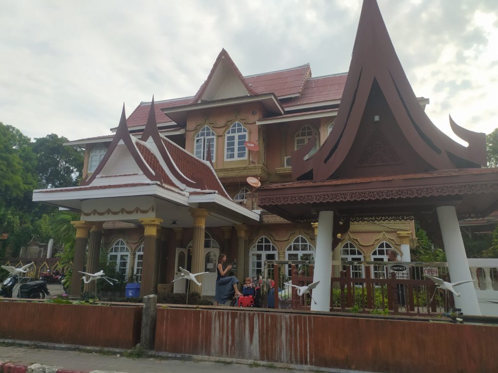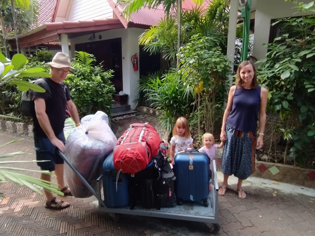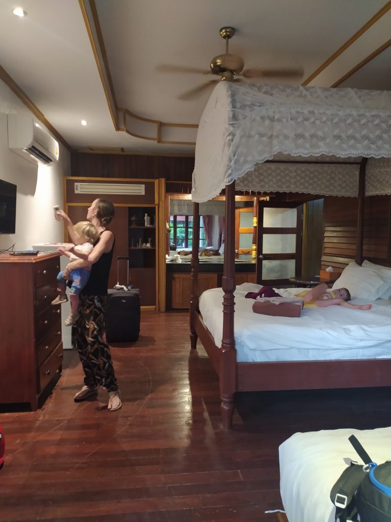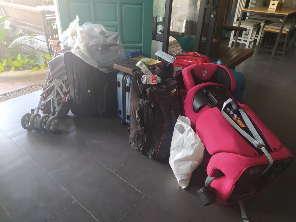 Pour casser un peu le train train, nous passons une journée avec des amis du Congo de Mélina et Adrien à la plage de Choengmon au « Lost Beach Bar » qui semble au milieu de nulle part, un bar qui nous fait revenir trente ans en arrière, tout en bois, bambous, musique reggae. La crique serait charmante si les laisses de mer (naturelles mais aussi malheureusement beaucoup de plastique ) ne s’y rassemblaient pas. Déjeuner pieds dans le sable, charmante île privée en face quasiment reliée à notre plage par une bande de sable blanc. Ça ne vaut pas notre plage de Chaweng.